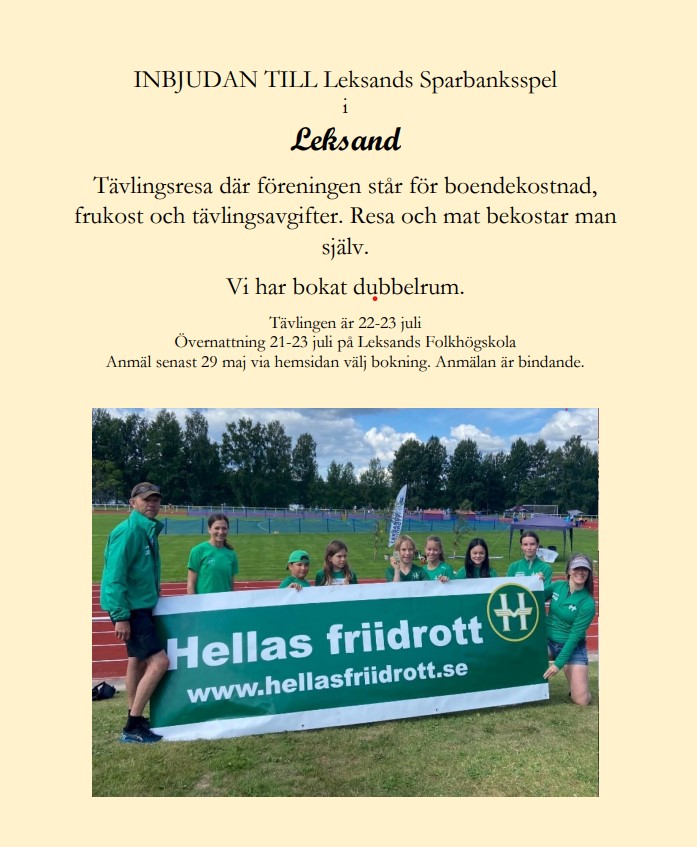 Info om tävlingen här Inbjudan till Leksands Sparbanksspel Tävlingsanmälan görs till ansvarig tränare.