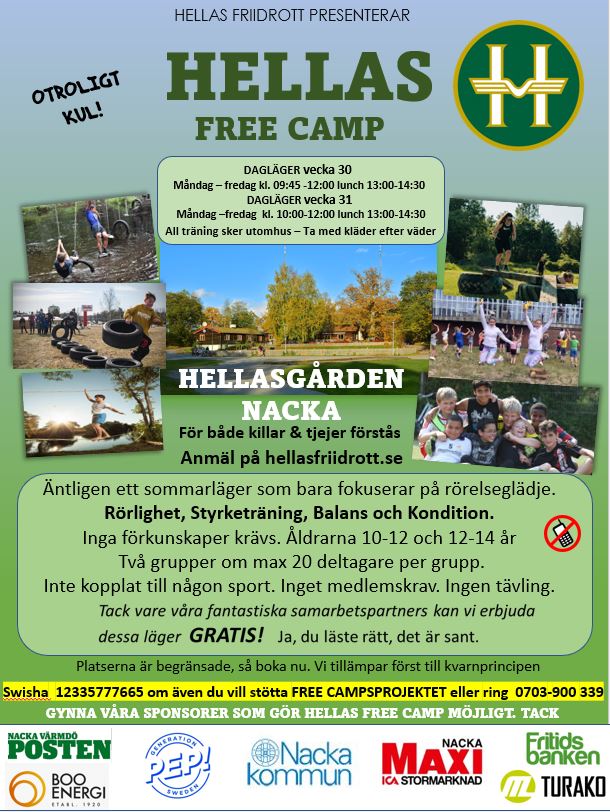 Nu är det anmälan öppen till Free Camp som är på Hellasgården i sommar.