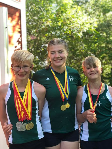 Guld i Tresteg för Jakob Lindberg P12 på 9.45m som även knep Guld i Höjdhopp på 1,45m och som även la till 4 silver i Stavhopp, Spjut, 60m respektive Längdhopp.