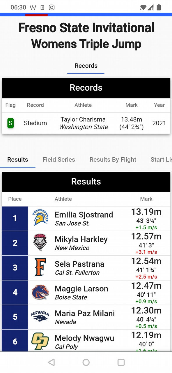Emilia klippte till med 13,19 i USA natten mellan lördag och söndag. Vind 1,5. Hon hade även ett hopp på 12.82 i lite för mycket vind.